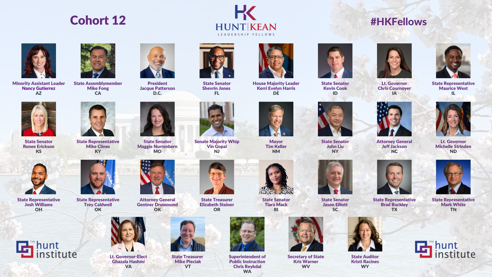 “All students and communities deserve a fully funded education system that recognizes their unique needs, because education is the foundation of opportunity,” said State Superintendent Chris Reykdal (NP-WA). “I’m honored to be part of this cohort and grateful to The Hunt Institute for the opportunity. I look forward to collaborating with this group of education-minded leaders to learn, share ideas, and make a difference.”