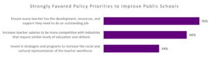 The 2026 poll shows overwhelming support for hiring quality teachers, with 93 percent agreement—the highest priority across all education issues. The message to policymakers is clear: voters see teacher quality as the foundation for every other education reform. Parents and voters also strongly support ensuring educators are well-trained and well-resourced to meet the needs of all students, regardless of background or zip code. This commitment extends to representation as well, with 80 percent of parents saying students thrive when classrooms reflect the world around them—reinforcing research that diverse educators strengthen both academic and social outcomes. Together, these findings point to a clear mandate: investing in a strong, well-supported, and diverse teacher workforce is essential to delivering the education system families expect.